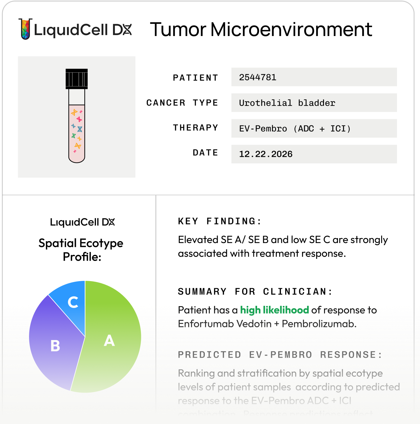 Patient samples are classified into Spatial Ecotypes and translated into a clear, clinically relevant report.